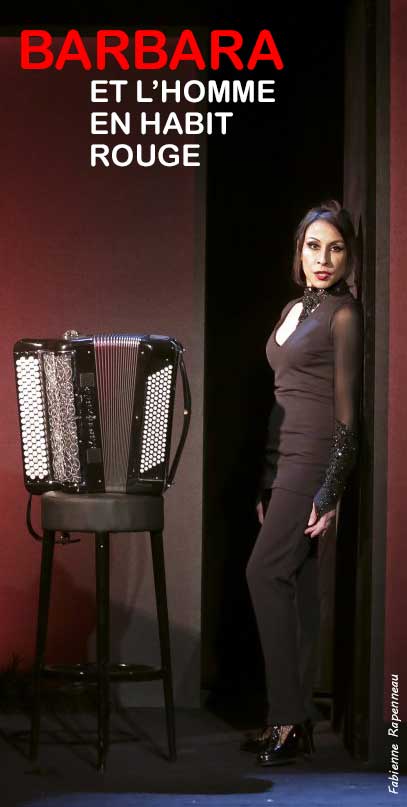 H abit Rouge de Guerlain, c’est le parfum que Barbara a offert à Roland Romanelli pour ses 21 ans. A peine arrivé à Paris, le jeune accordéoniste et pianiste est engagé par la dame en noir pour la suivre en tournée en Italie. Il doit apprendre trente chansons en vingt-quatre heures ! Ce souvenir, et bien d’autres, le musicien les raconte avec émotion et pudeur dans un spectacle unique où il rend hommage à cette personnalité hors norme. D’elle il a appris la vie, la musique et l’amour. En 1967, il est accompagnateur de Colette Renard et de Mouloudji, tandis que Barbara est une auteure-compositriceinterprète en pleine ascension, issue du cabaret, comme Brel, Brassens, Piaf ou Ferré. Leur rencontre sera à la fois amoureuse – huit ans de vie commune – et professionnelle – vingt ans sur scène ensemble. Elle est joliment évoquée dans ce spectacle musical grâce à une concentration de talents : la mise en scène d’Eric-Emmanuel Schmitt qui restitue l’univers de Barbara (le grand piano noir, le fauteuil à bascule), les superbes éclairages de Jacques Rouveyrollis, qui a souvent « habillé » la grande dame brune, les interprétations magistrales de Roland Romanelli au piano et à l’accordéon et de Jean-Philippe Audin au violoncelle. Enfi n Rébecca Mai, chanteuse amoureuse du répertoire de Barbara. Entre les confi dences de Roland, qui est devenu son compagnon, et des extraits d’interviews, souvent drôles, données par Barbara, Rébecca reprend vingt de ses plus belles chansons : « Nantes », « Vienne », « Göttingen », « Une petite cantate », « Dis, quand reviendras-tu ? »… Elégante, raffi née, cette ancienne danseuse classique devenue comédienne et chanteuse n’est jamais dans l’imitation. Elle interprète avec un plaisir évident celle qui fut en osmose avec son public et composa pour lui « Ma plus belle histoire d’amour ». Pour conclure l’hommage à ce monstre sacré, « L’Aigle noir » s’imposait. Rébecca la revisite d’une manière superbe, avec les Chœurs de France qui donnent de la voix depuis le fond de la salle.